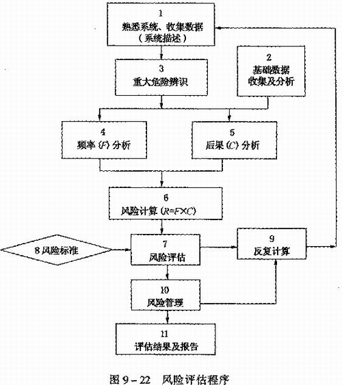风险分析是指系统地运用已有的信息资料来确定危害,并且就其对个体或群体造成的风险进行评估。风险评估程序见图9—22。
