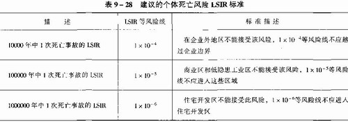 表9—28所列标准能符合世界各地不同的风险标准,建议作为我国个体死亡风险LSIR评估的标准。