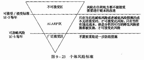 在ALARP区域的工厂,只有当所有可行的风险降低措施都已实施的情况下,风险才可接受。特别是在ALARP的高端(在每年1E—4到1E—3),工厂可以继续运行,但是通过成本分析认可的风险减低措施一定要认真地考虑和实施。