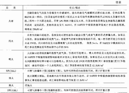 后果分析主要是评估事故发生后造成的后果,对人员、设备及建(构)筑物等的影响,每个可能发生的事故的后果分析采用计算机模拟来进行。比如一个单一的有毒物质泄漏事故可能导致毒物扩散,可能导致人员中毒伤亡等;一个单一的可燃物质泄漏事故可能导致喷火、闪火、火球或者爆炸,火灾的热辐射及爆炸冲击波可能导致人员伤亡。事故后果分析包括: