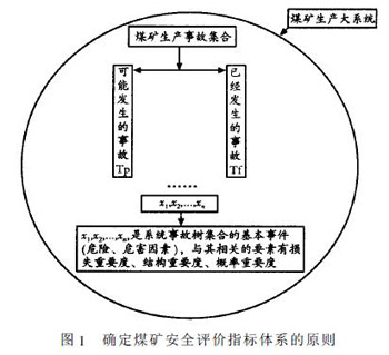 基于上述局限性分析,对煤矿而言,其评价指标的分析和确定首先应纳入生产大系统(Full system),即具体安全评价工作的范畴、内容是基于具体煤矿,其评价的指标确定和赋初值是以现行《煤矿安全规程》、规范、技术标准为依据而衍生的,并不断改进、完善。此即“大系统原则”。