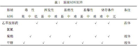对于其它几种原辅材料,我们就主要原辅材料的物化性质及贮存条件等进行对照、比较,具体可见下表: