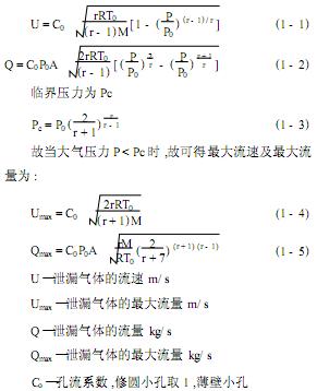 因为储罐储存的液化甲醇是具有挥发性,甲醇在储罐中的泄漏与在反应器中的泄漏方式相似,故储罐泄漏量我们同样可以采用气体经小孔泄漏的源模式进行分析,如下: