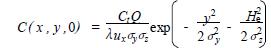 估算液态泄漏物质在不同时空点的浓度,要视环境介质的形态采用合适的预测模型。如果介质为水体,则可视水体长度、宽度、深度、水文条件等合理选用零维、一维、二维或三维水质模型来预测;如果介质为气态,可根据液态泄漏的挥发速率,将之视为气态物质对待。对于气态物质在不同时空点的浓度,一般采用大气微量污染扩散模式计算。连续排放时,地面浓度可用下式计算: