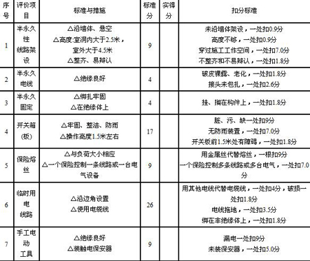 ②根据施工现场供用电的实际情况,必要时增减或修改评价表中的项目和标准分。但要慎重论证修改的科学依据与必要性。否则,评价表将成为任意性的、毫无权威的东西。