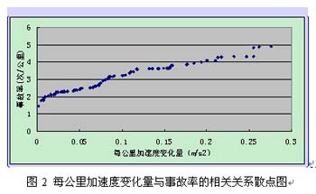 如图2所示,每公里加速度变化量与事故率(次/km)呈正相关性,加速度变化的幅度越大,则发生交通事故的可能性就越大。