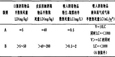 根据公安部标准GA57—93《剧毒物品分级、分类与品名编号》规定,剧毒物品急性毒性分级标准为如下表所示。