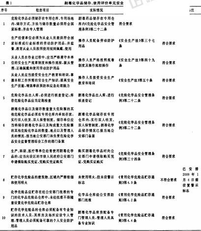 根据国家有关法规、标准。编制了《剧毒化学品储存、使用评价单元安全检查表》对监控中心剧毒化学品辅助设施安全性方面进行综合检查评价,现场检查内容、事实记录及检查结果见表1。用《剧毒化学品储存、使用评价单元安全检查表》对企业质检科辅助设施评价单元进行分析评价,根据检查结果可知,全部10项检查内容中,不合格项为1项,合格项为9项,占全部检查项目的90%,可视为基本符合安全要求。