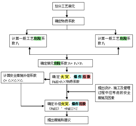 进行火灾、爆炸危险指数评价的第一步是确定评价单元。因为工程或装置是由多个单元所组成的,在评价火灾、爆炸危险性时,要选择那些对工艺有影响的单元进行评价,这些单元被称为评价单元。单元是工程或装置的一个独立部分,与其他部分保持一定的距离,并用防火墙、防爆墙、防护堤等与其它部分隔开。通常,在不增加危险性潜能的情况下,可把危险潜能类似的单元归并为一个较大的单元一并计算。