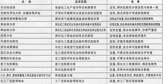 国内外常用的安全评价方法很多,不下百余种。其中可用于化工企业的常用方法如表1所示。我们将从实际应用角度出发叙述安全评价方法的选择原则与方法。