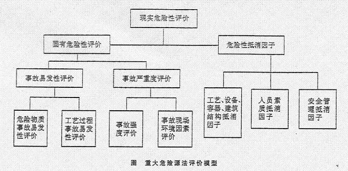 重大危险源法全称易燃、易爆、有毒重大危险源评价方法,系国家“八五”科技攻关专题“易燃、易爆、有毒重大危险源辨识评价技术研究”的主要成果〔2〕。其评价模型如图所示,评价结果如表3所示。