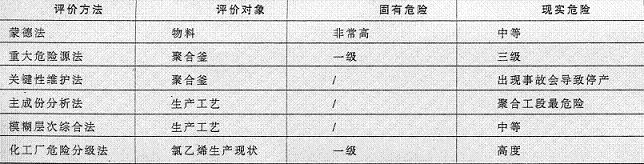 选择多种评价方法对氯乙烯生产进行安全评价的结果见表5。