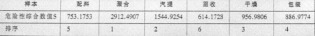 主成份分析属于现代多元统计分析方法,能将原有的指标重新组合成相互无关的综合指标,并由较少的综合指标反映85%以上原有指标信息,分析过程进行了数据的标准化处理,消除了指标量纲和数量级的影响,权重的获得属于客观赋权法,其信息来自统计数据本身,评价结果比较客观〔3〕。以各个工段为样本,收集相关指标建立评价体系,求出综合表达式并对计算结果进行排序,从而反映出化工生产全过程的安全生产状况,有助于采取有效防范措施。由主成份分析侧重对装置的化工工艺进行评价,评价结果如表4所示。我们也曾采用模糊层次评价方法对氯乙烯生产的安全现状进行总体评价得出总分为58.25,对照安全等级属于“中等”级。