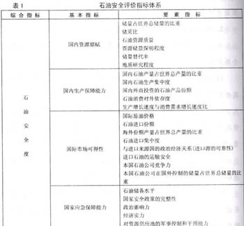 石油安全指标体系框架由综合性指标、基本指标和要素指标三个层次构成。