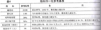 将1993年~2004年各指标值进行归一化处理,各指标归一化处理参考基准值如表4。