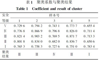 本文选取了四川达竹煤电集团某矿1122(21)开切眼(1)、2014(7)运输巷(2)、西集中巷(3)、平顶山某矿戊9 - 10—21170 机巷(4)、铜川某矿4102 开切眼(5)等矿现场掘进工作面为待评价的样本,把它们称为聚类对象。聚类指标33 个,根据安全评价标准[5,6,7],把安全评价结果划分为5 个聚类灰数(即灰数)[8],即V、Ⅳ、Ⅲ、Ⅱ、Ⅰ。对3 类危险源评价可以借鉴灰色聚类来评价,以灰色聚类评价结果来确定启动样本的输出,其灰色聚类评价结果见表1。