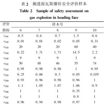 以危险源安全评价标准作为另一部分样本(安全标准值样本),与上述启动样本一道,组成共10 个训练样本。