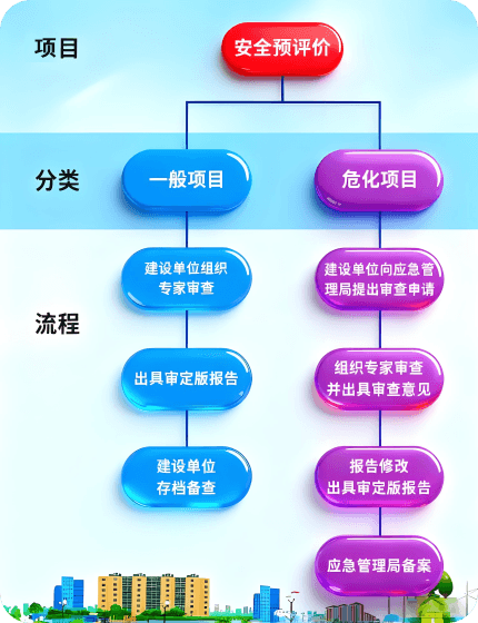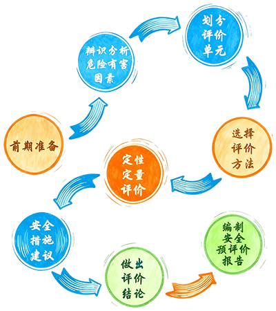 根据委托合同及项目基础文件明确评价范围;搜集项目相关信息、资料;搜集相关法律法规、标准规范;搜集相关事故案例与类比资料;进行现场勘查; 分析和识别项目可能存在的危险有害因素;分析危险有害因素可能的发生途径和变化规律; 根据科学、合理的原则进行评价单位的划分;选择不同的方法对单元内危险有害因素发生的可能性和事故的危害性进行定性、定量评价; 提出安全技术、安全管理等对策措施;明确评价结论。