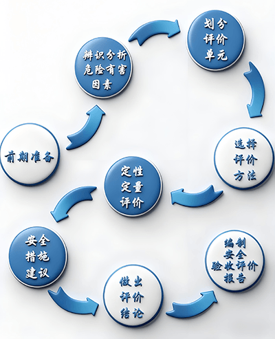 1、根据委托合同、项目基础文件、项目实际情况明确评价范围;搜集项目相关信息、资料、批复文件、检测检验文件等;搜集项目相关管理制度、操作规程等;搜集相关法律法规、标准规范;搜集相关事故案例与类比资料;进行现场勘查; 2、参考安全评价(专项评价),根据周边环境、平立面布局、生产工艺、辅助生产设施、公用工程、作业环境、场所特点,分析并列出危险有害因素及其存在部位、重大危险源分布及监控情况; 3、划分评价单位并选择相应的评价方法;进行符合性评价;对事故发生的可能性及其严重程度进行预测; 4、根据评价结果提出具有针对性、可操作性和经济合理性的对策措施建议;明确评价结论。