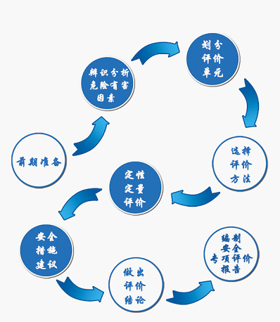 根据委托合同及实际情况明确评价范围;搜集评价范围内相关信息、资料、批复文件、检测检验文件等;搜集项目相关管理制度、操作规程等;搜集相关法律法规、标准规范;搜集相关事故案例与类比资料;进行现场勘查; 参考安全评价(专项评价),根据周边环境、平立面布局、生产工艺、辅助生产设施、公用工程、作业环境、场所特点,分析并列出危险有害因素及其存在部位、重大危险源分布及监控情况; 划分评价单位并选择相应的评价方法;进行符合性评价;对事故发生的可能性及其严重程度进行预测; 根据评价结果提出具有针对性、可操作性和经济合理性的对策措施建议;明确评价结论。