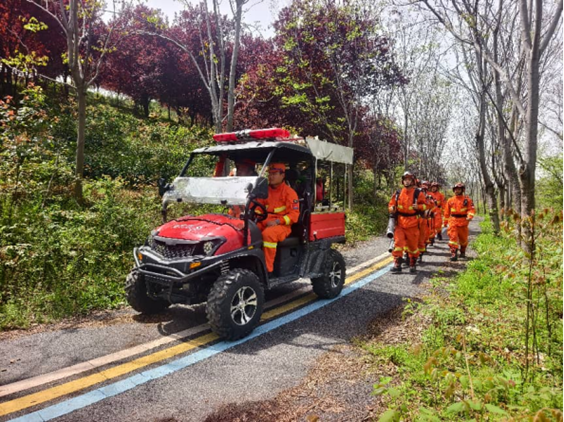 在九真山、青龙山和大军山方向,支队前置分队以“定点巡护+携装巡护”方式,开展防火专项勤务,在重点路段靠前值守,发放宣传单1000余份,引导文明祭扫。创新运用展示机器人赋能防火宣传,与地方安保力量联勤联动,全方位排查火险隐患,筑牢山林防火防线。