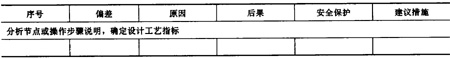 分析记录是HAZOP分析的一个重要组成部分,应根据分析讨论过程提炼出恰当的结果,不可能把会议上说的每一句话都记录下来(也没有这个必要),但是必须记录所有重要的意见。有些分析人员为了减少编制分析文件的精力,对那些不会产生严重后果的偏差不予深究或不写入文件中,但一定要慎重。也可举行分析报告审核会,让分析组对最终报告进行审核和补充。通常,HAZOP分析会议以表格形式记录,如表3所示。