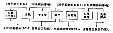 分析开始时就要根据系统的情况,决定分析到什么层次。这是一个重要的问题。图2是分析层次与故障模式及影响分析的关系。