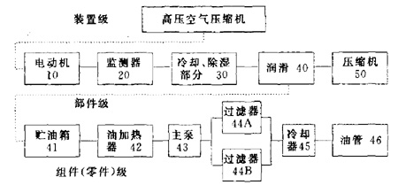 可靠性框图是从可靠性的角度建立的模型,它把实际系统的物理、空间要素与现象表示为功能与功能之间的联系,尤其明确了它们之间的逻辑关系。图3是高压空气压缩机的可靠性框图。
