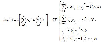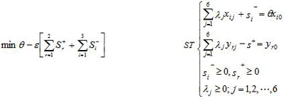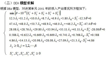 本文选择需要评估的年份作为决策单元,即2001-2006年作为6个决策单元,则评价第 个决策单元综合效率的具有阿基米德无穷小的 模型为: