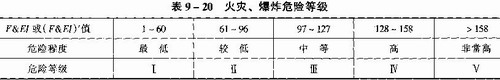 求出F&EI和(F&E1)’后,按表9—20确定其火灾、爆炸危险等级。