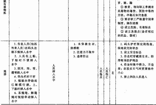 例2某新建化工码头安全预评价预先危险性分析对某新建化工码头项目进行劳动安全卫生预评价,对码头装卸作业进行预先危险性分析并提出了防范措施,分析结果见表9—10。