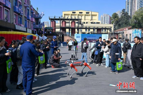 救援机器狗吸引不少民众驻足围观。记者 刘忠俊 摄